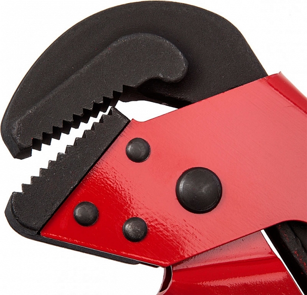 - Нижняя и верхняя щека из хром-ванадиевой стали двойной закалки: качественная закалка губок обеспечивает надежный захват и предотвращает от проскальзывания, зубцы имеют высокую прочность и износостойкость