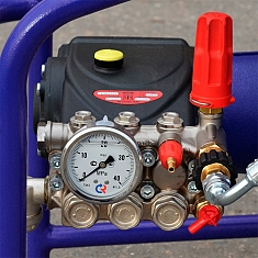 - Профессиональный надежный насос высокого давления с керамическими плунжерами Interpump (Италия) и электродвигатель с защитой от перегрузки повышают эффективность очистки и надежность эксплуатации