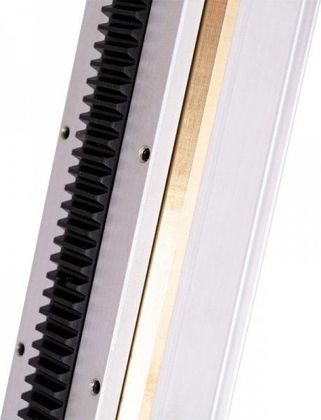- Алюминиевая колонна со стальным основанием и электродвигатель, закрепленный на рабочей каретке с быстросъемным креплением "ласточкин хвост", которая перемещается по стойке с помощью стальной зубчатой рейки